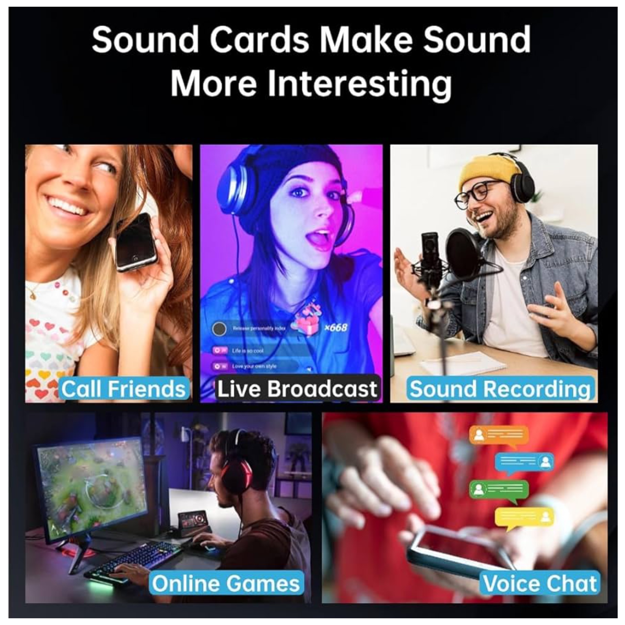 This sound card allows you to connect microphones, smartphones, and computers simultaneously, making it ideal for platforms like TikTok, YouTube, Instagram Live, and gaming streams. With its plug-and-play functionality, no additional drivers or software are required—simply connect and start streaming instantly.